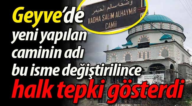 Geyve'de yeni yaptırılan caminin ismi değişince halk tepki gösterdi. Geyve Alifuatpaşa'da yeni yaptırılan camide isim sorunu. Geyve'nin Alifuatpaşa mahallesinde 2 yıl önce temeli atılan, Eyüp Sultan Camii'nde yapılan isim değişikliği bölge halkının tepkisine neden oldu.