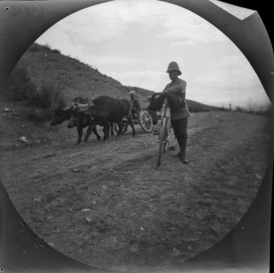 Geyve'de bisiklet yağlanırken.. Arka planda Osmanlı devletinin görevlendirdiği 2 atlı koruma