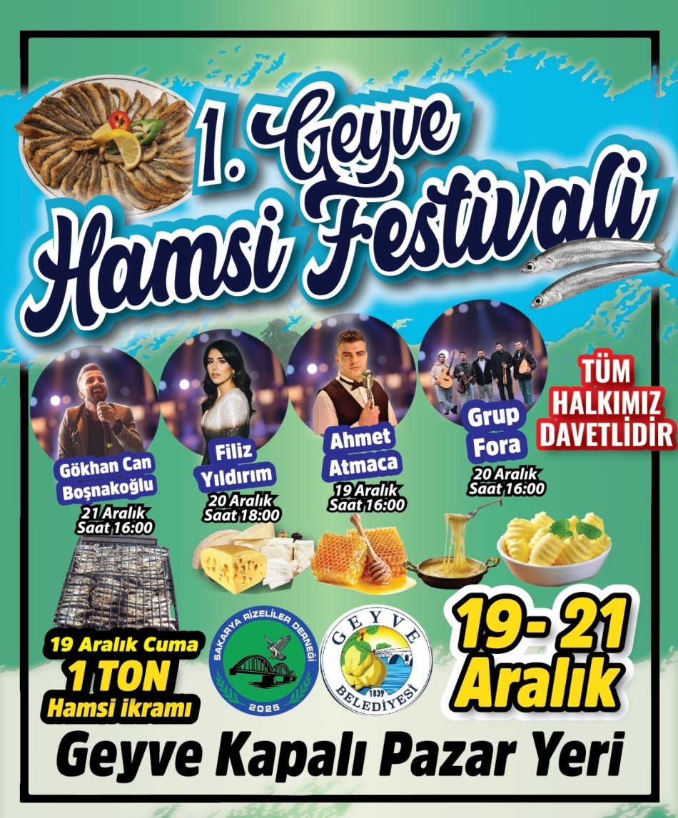 Sakarya Rizeliler Derneği ve Geyve Belediyesi'nin ortaklaşa düzenlediği 1. Geyve Hamsi Festivaline herkes davetlidir.