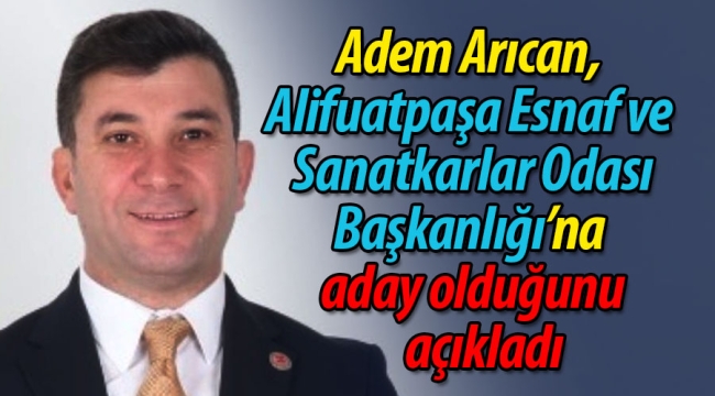 Alifuatpaşa mahallesi eski muhtarı Adem Arıcan, 7 Şubat'ta yapılacak Alifuatpaşa Esnaf ve Sanatkarlar Odası Olağan Kongresi'nde başkan adayı olduğunu açıkladı.