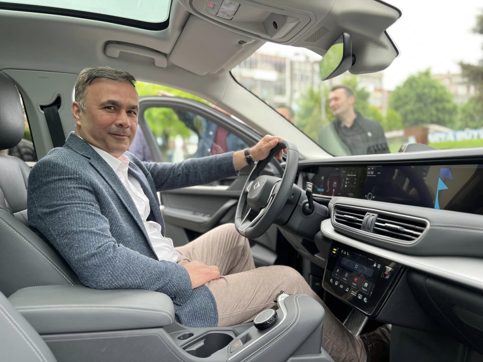 Geyve Belediye Başkanı Metin Atalay, Sakarya Büyükşehir Belediye Başkanlığı'na tahsis edilen Türkiye'nin yerli otomobili TOGG'un direksiyonuna geçti.