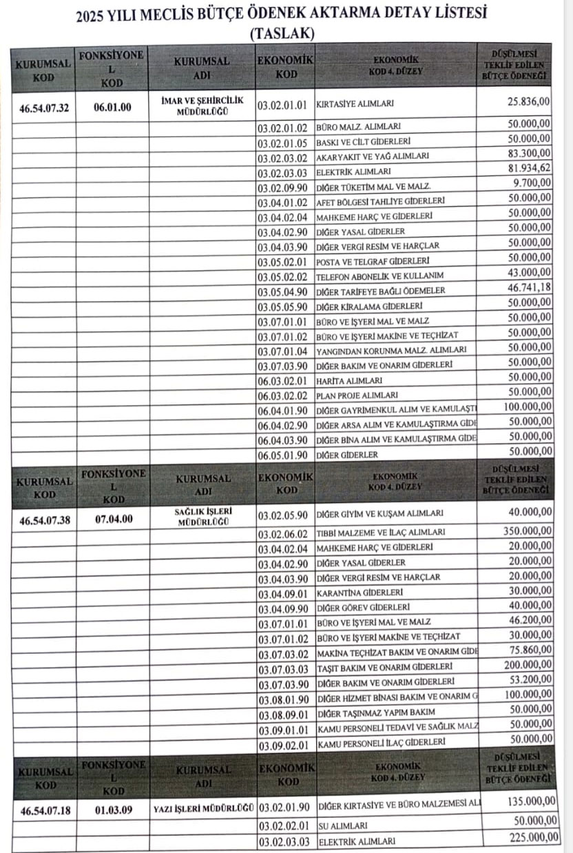 - Geyve Belediyesi Plan ve Bütçe Komisyonu'na havale edilen 2025 yılı bütçesinde ödenek artırımı ile ilgili;