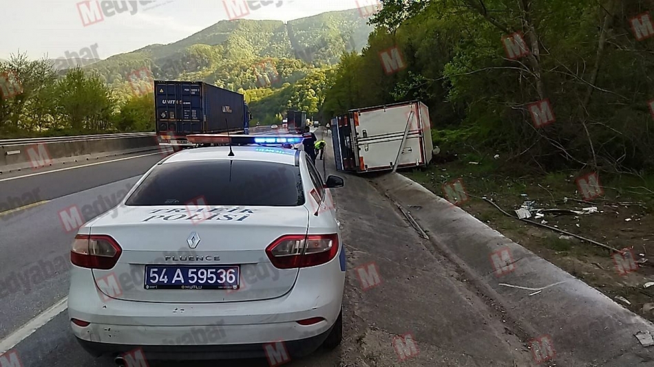 D-650'de margarin yüklü TIR devrildi.. D-650 Karayolu Geyve geçişinde meydana gelen trafik kazasında, sürücüsünün kontrolü kaybettiği margarin yüklü tır devrildi. Kazada sürücü yaralandı.