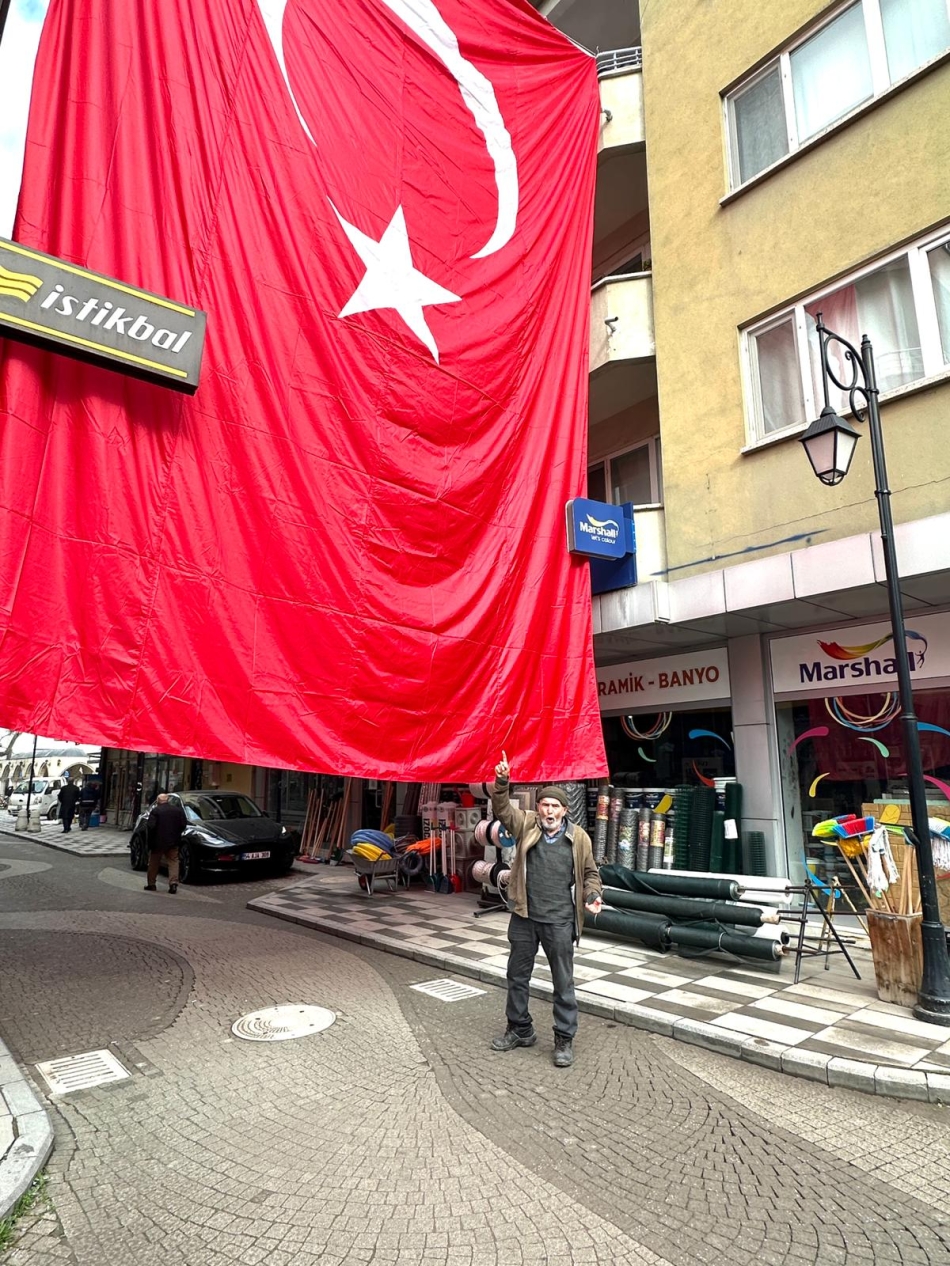 Dev bayrağı gören vatandaşlar; "Camikebir Mahallesi Paşa Sokak esnafına bu duyarlılığı için çok teşekkür ederiz" diyerek memnuniyetlerini dile getirdi.
