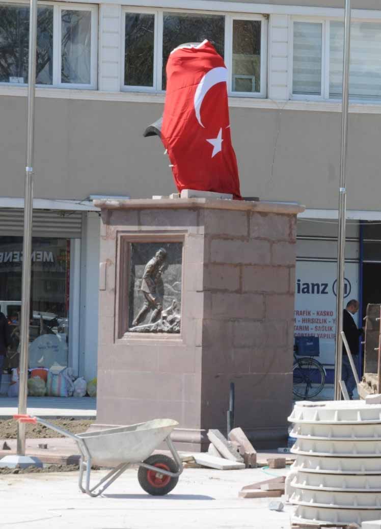 Geyve Cumhuriyet Meydanı'nın ortasında bulunan 60 yıllık Atatürk anıtı, Meydan Projesi kapsamında Belediye binasının önüne taşınmak üzere geçtiğimiz ay kaldırılmıştı.