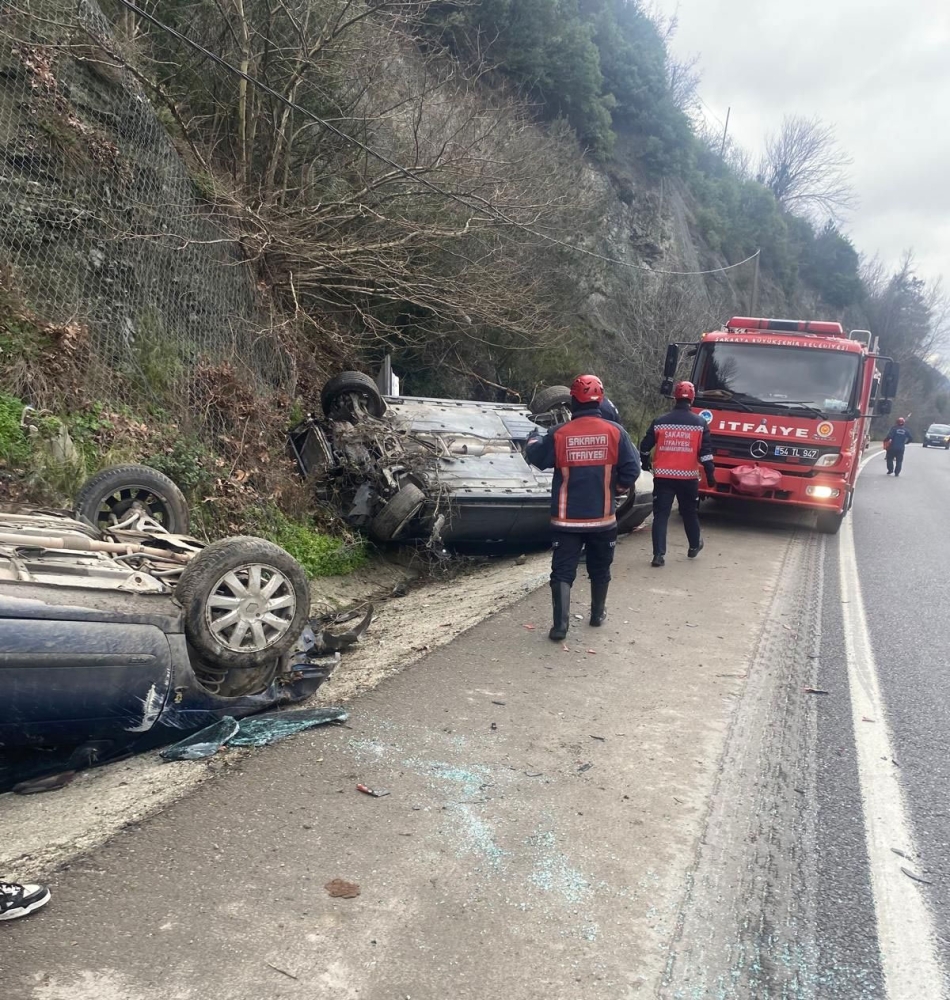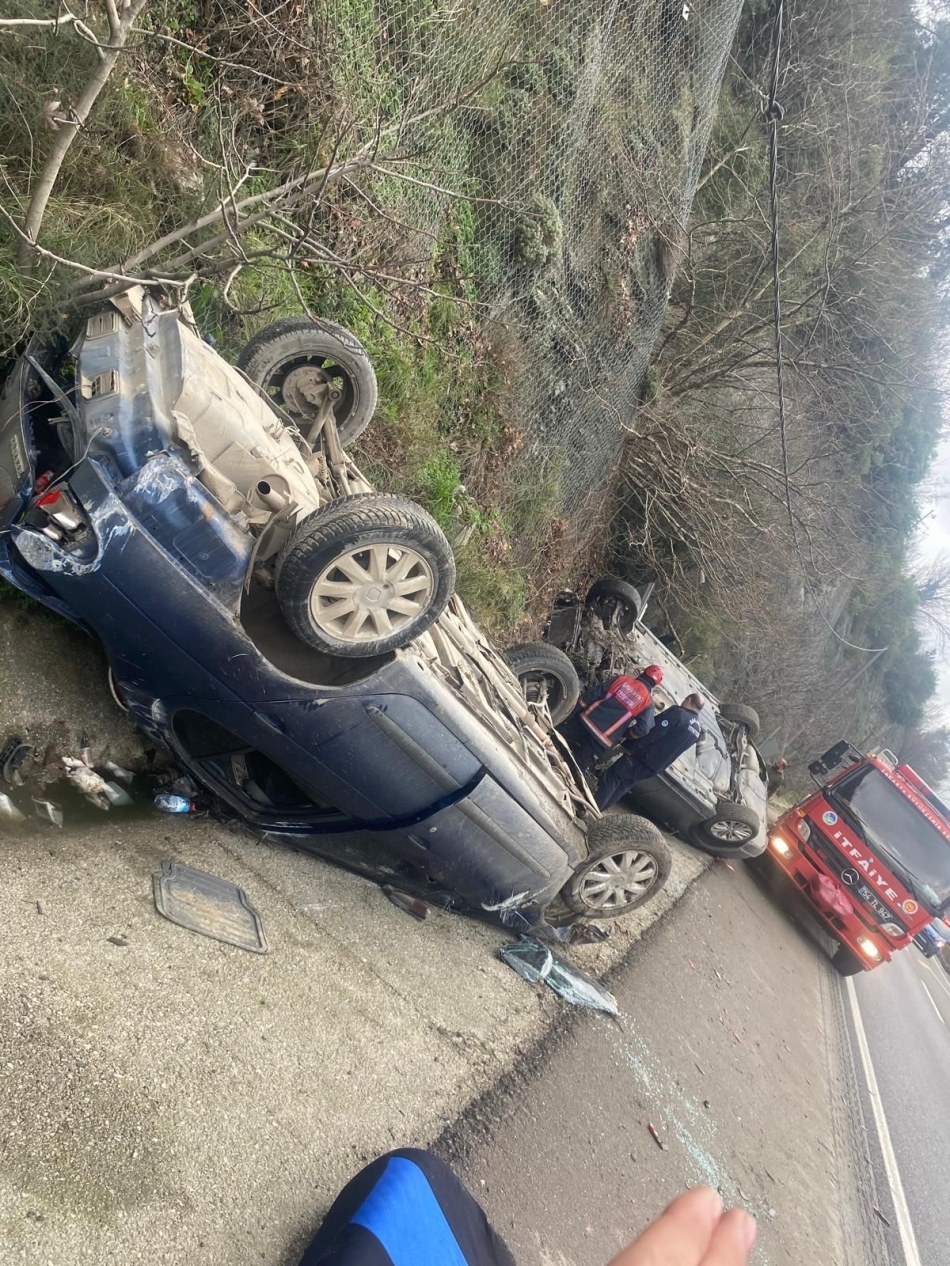 Geyve'de hatalı sollama iki otomobile takla attırdı; 3 kişi yaralandı...