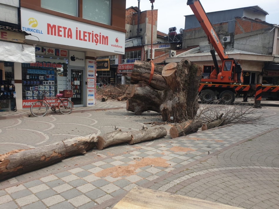 Geyve çarşısında kuruyan çınar ağacı nihayet tehlikesiz hale getirildi. Üç yıl önce kuruyan ve çevrede teklike arz eden çınar ağıcı nihayet tamamen kesilerek kontrol altına alındı.