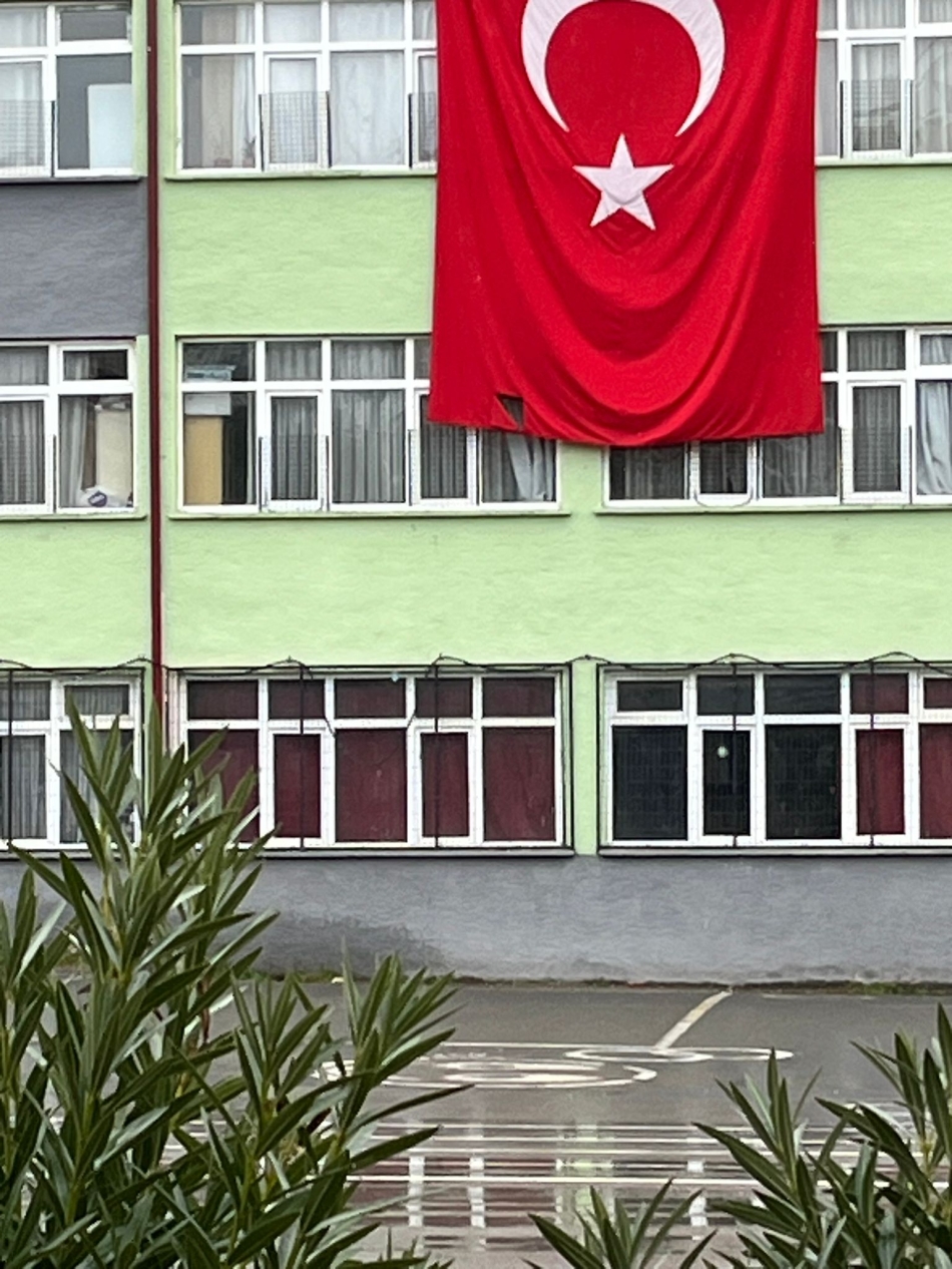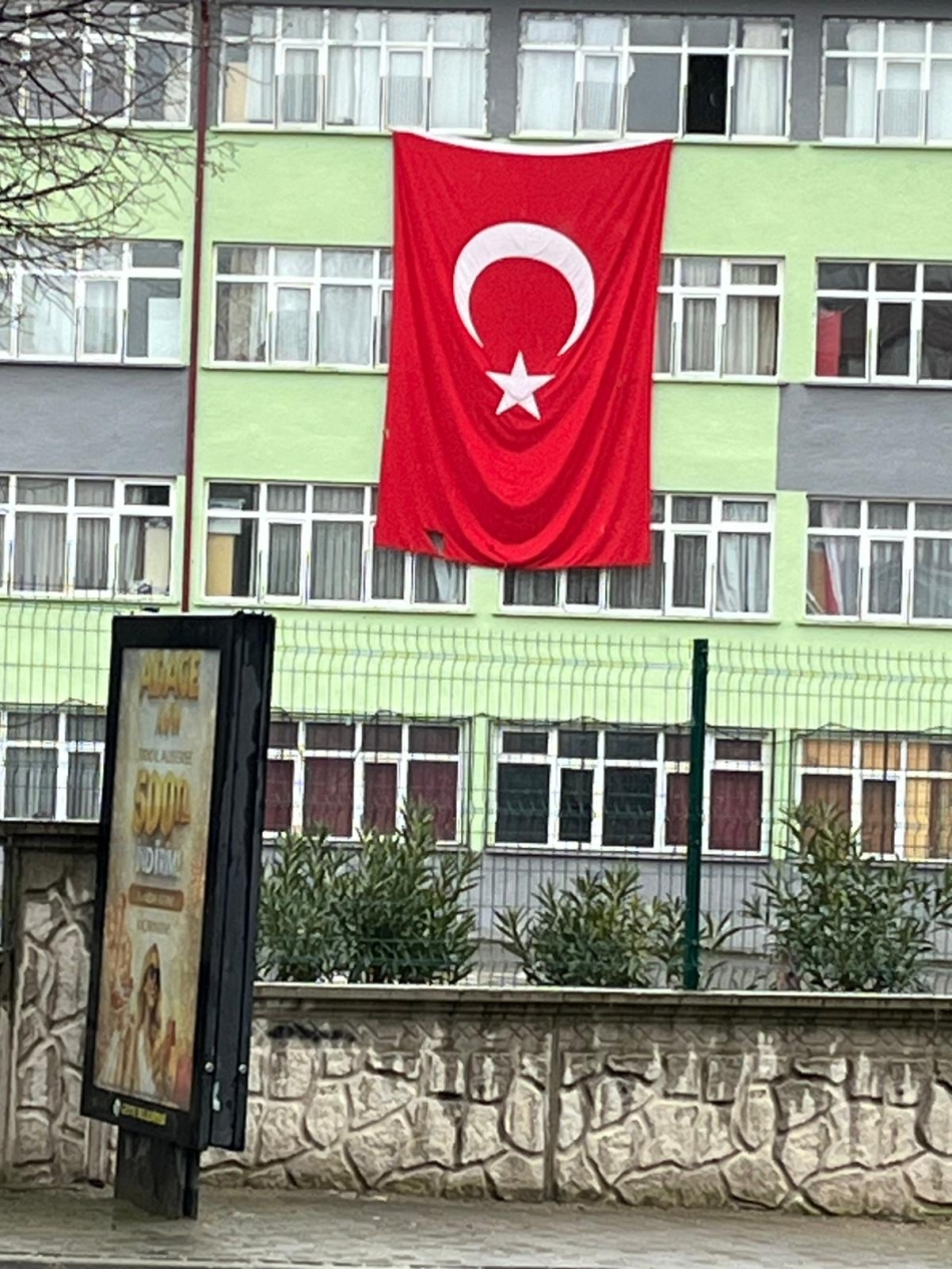 Geyve Atatürk İlk-Ortaokulu'nda tahrip olan Türk Bayrağı vatandaşın dikkatinden kaçmadı.