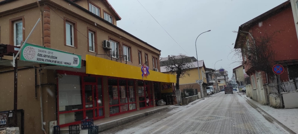 Geyve ilçe merkezine bu sezon nihayet kar yağdı.
