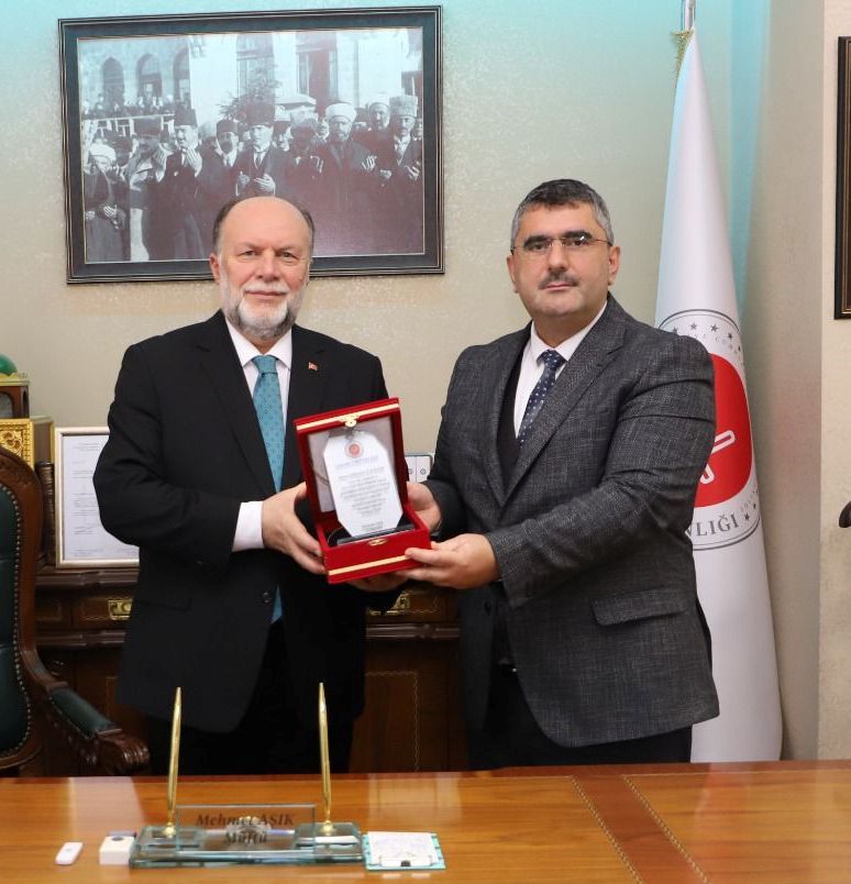 Ziyaret kapsamında Sakarya İl Müftüsü Mehmet Aşık, İlçe Müftüsü Bayındır’a hizmetlerinden dolayı teşekkür ederek plaket takdim etti.