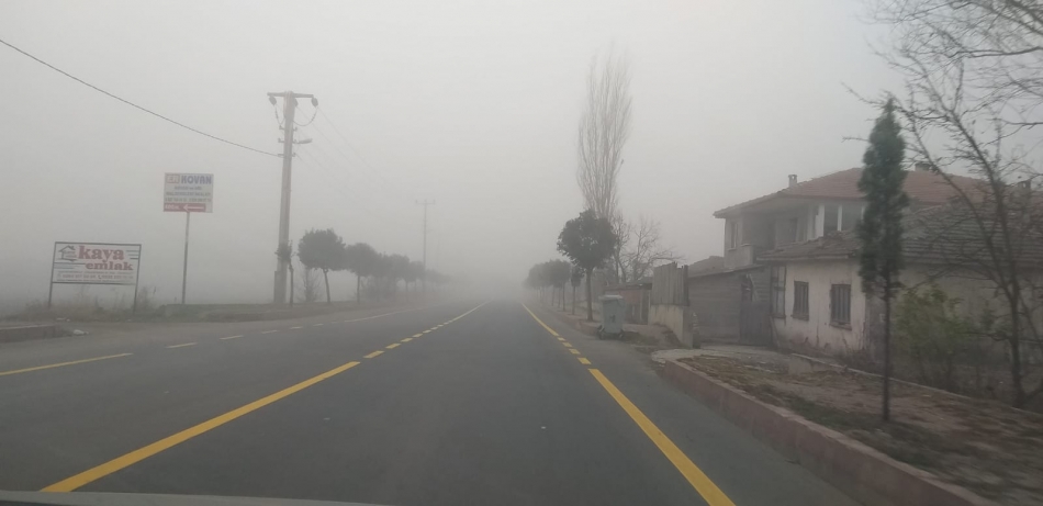 Geyve'de yoğun sis. Yoğun sis nedeniyle Geyve ve Alifuatpaşa'da görüş mesafesi yer yer 30 metrenin altına düştü.