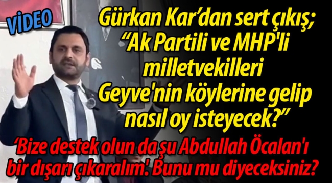 Gürkan Kar'dan sert çıkış; “Ak Partili ve MHP'li milletvekilleri Geyve'nin köylerine gelip nasıl oy isteyecek?”