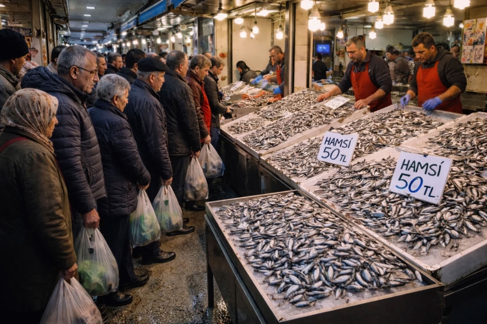 Hamsi 50 TL'ye düşünce metrelerce kuyruk oluştu
