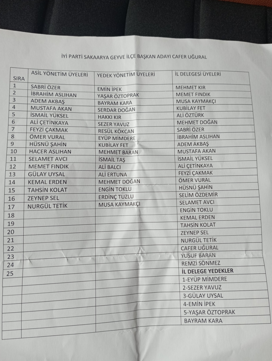 İŞTE İYİ PARTİ GEYVE İLÇE YÖNETİM KURULU LİSTESİ