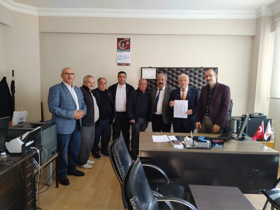 Mazbatasını alan Cafer Uğural, ilçe yönetim kurulu üyeleri ve partililerle hatıra fotoğrafı çektirdi.