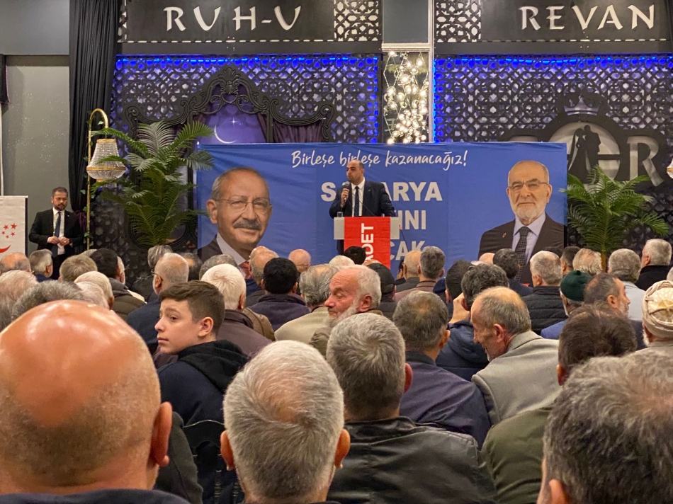 14 Mayıs seçimlerine CHP listesinden giren Saadet Partisi Sakarya'da Seçim Hamle Toplantısı gerçekleştirdi. Programa konuk olan Saadet Partisi Genel Başkan Yardımcısı ve aynı zamanda İstanbul 3. Bölge Milletvekili adayı olan Av. Bülent Kaya katılımcılara hitap etti.