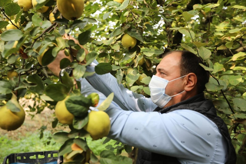 Başkan Kaya'dan çalışmalar ve projeler hakkında bilgiler alan Vali Çetin Oktay Kaldırım, daha sonra dünyaca ünlü ‘Geyve Ayvası ve Geyve Üzümü’ hasadına katılıp çiftçilerle bir süre sohbet etti.